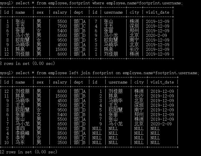 外连接查询,关联表之间不需要相互匹配,分左右连接