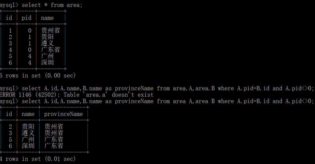 insert into area(id,pid,name) values(1,0,"贵州省");
