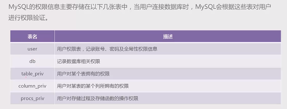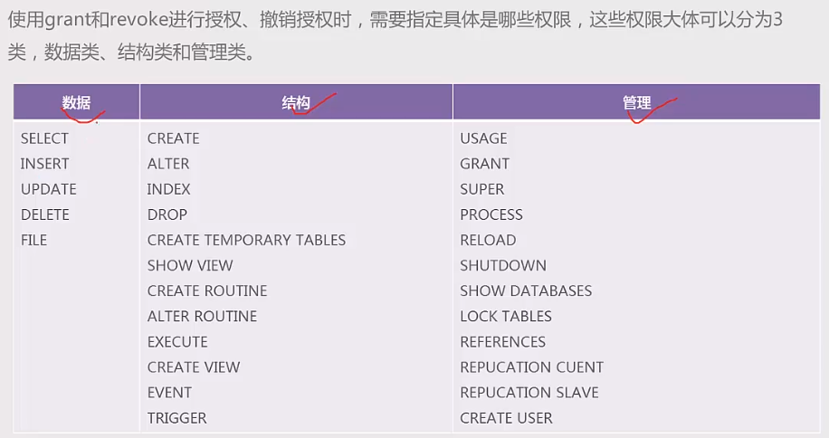 权限体系:全局层级、数据库层级、表层级、列层级、子程序层级