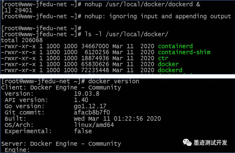 3)基于CentOS7.x Linux操作系统(Linux内核版本:3.10+),从0开始构建了一套Docker虚拟化平台,部署的版本为:Docker-19.03.8,如图所示: