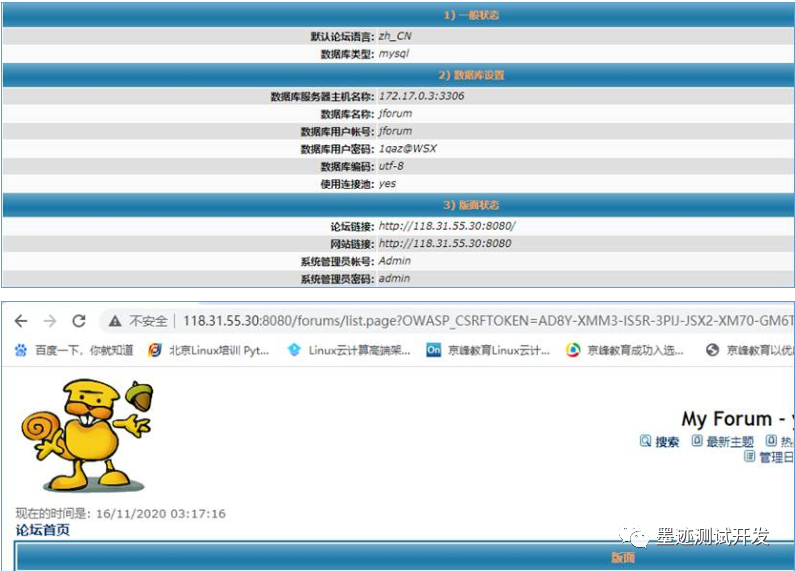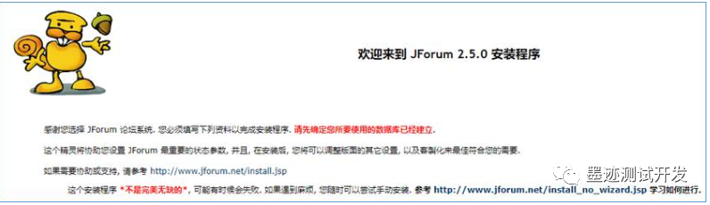12)Jforum是基于JAVA语言开发的动态论坛网站程序,默认论坛程序需要连接后端数据库,所以需提前部署MYSQL|Mariadb数据库平台,并且创建Jforum论坛所需库名称、授权用户名和密码访问。