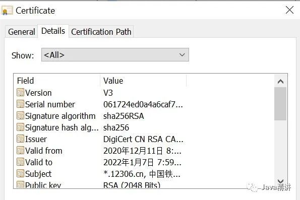 。值得一提的是虽然PKCS#12为一种证书格式,但在Java中,个人更觉得是一种KeyStore格式,因为PKCS#12格式文件中既可以存储证书,还可以存储私钥,而一般意义说来,证书是不包含私钥信息的。