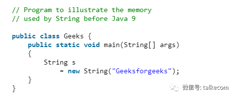 这里值得注意的是:在上述程序中,我们可以看到在Java 9之前,Java仅将String对象表示为char []。假设我们创建一个String对象,并且该对象包含可以使用1个字节表示的字符。代替将对象表示为byte [],它只会创建char [],这将消耗更多的内存。JDK开发人员分析说,大多数字符串只能使用Latin-1字符集表示。Latin-1字符可以存储在一个字节中,恰好是char大小的一半。这将提高String的性能。