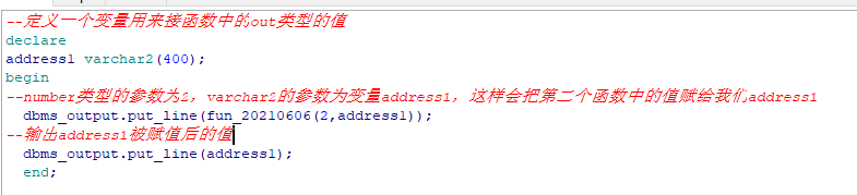 --number类型的参数为2,varchar2的参数为变量address1,这样会把第二个函数中的值赋给我们address1