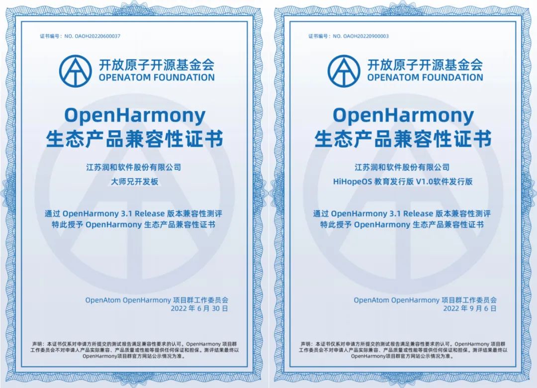 润开鸿大师兄开发板与润开鸿HiHopeOS面向教育行业的软件发行版已分别于2022年6月30日及2022年9月6日获颁OpenHarmony生态产品兼容性证书,这为恩孚科技大师兄人工智能编程学习套装顺利通过OpenHarmony兼容性测评铺垫了坚实基础。