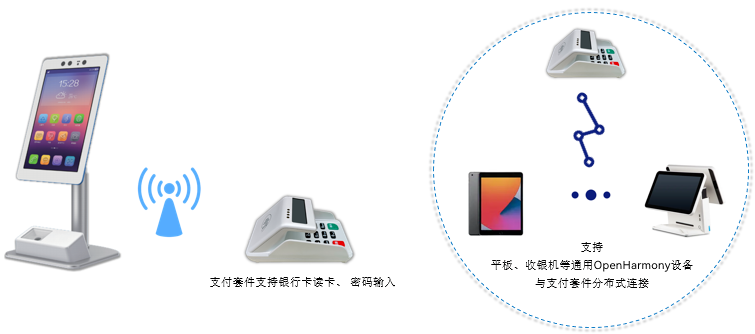 证通电子支付密码键盘设备(ZT925)OpenHarmony生态产品兼容性证书ZT925集成密码键盘和非接读卡器等金融部件,组成一个最小化的安全支付套件,对外提供金融支付功能,通过搭载OpenHarmony 3.1 Release系统,自带分布式组网能力,能够自动发现并完成和主设备的身份鉴别和自动组网,扩展主设备的金融支付功能。ZT925和主设备分别接通电源后,根据各自预置的策略,组成一个星型、拓扑结构稳定的网络。用户在主设备上办理业务,在金融支付交易环节,通过OpenHarmony软总线技术流转交易信息到ZT925。远程终端ZT925的指示灯开始闪动,进入金融业务办理状态,响应客户在ZT925上的刷卡、密码输入等操作。至此,主设备和ZT925通过远程联动,完成支付交易。这次终端产品创新,通过将支付有关的安全部件和通用部件做成独立的部件,终端形态与场景更契合,提高了整体可携带性。不仅如此,对行业发展来说,终端设备厂商进一步做了分工,专业的安全支付厂商专注于研发安全部件,行业厂商聚焦于通用部件和业务体验,通过指定的策略,聚合不同的安全部件,在商户侧形成超级终端,提升支付体验和安全性。更重要的是,对于终端操作系统主线版本的更新,通过OpenHarmony软总线互联的终端,只需要做差异化的安全认证,就能快速迭代行业设备。此外,传统金融终端采用核心板和扩展底板将密码键盘等安全部件和显示屏、摄像头等通用部件组装在一起的方式,不能很好匹配行业的碎片化需求。如果场景需要新增一个显示屏,就涉及到整机变动。现在,将密码键盘、读卡器这些金融部件做成独立的支付安全套件,将金融部分解耦出来,通过OpenHarmony软总线技术搭载不同形态的主设备,共同承载与展现金融业务,助力金融业务发展。ZT925基于OpenHarmony软总线场景创新-分布式解耦通过在金融终端上运用OpenHarmony软总线技术,证通电子从金融终端的实用性、可靠性、安全性和可扩展性出发,提高金融终端的业务支撑能力和智能化水平,满足碎片化的行业需求。进一步,证通电子通过引入定制化的组网策略,丰富OpenHarmony软总线控制技术,提升金融终端重构的效率。未来,证通电子将围绕金融服务终端,以OpenHarmony为技术底座,依托金融服务场景,实现金融终端产品创新,全面满足行业客户需求,为行业提供更多金融终端解决方案和服务更多的行业场景应用。证通电子始终秉承着“从客户需求出发”的理念,深耕金融行业数字化服务,助推金融行业数字化升级。