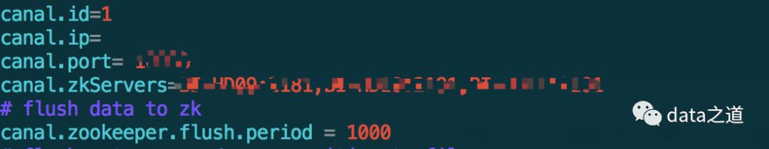 配置canal启动的端口号、连接的zookeeper、数据刷新到zookeeper的频率: