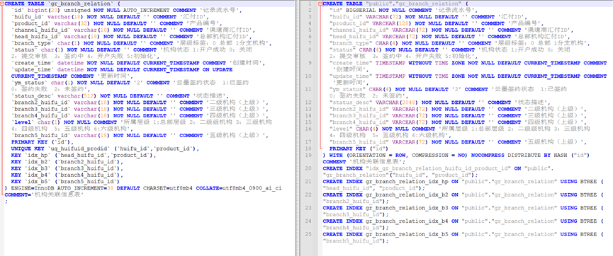 转换结果展示(左为源文件内SQL,右为经DSC转换后的结果):
