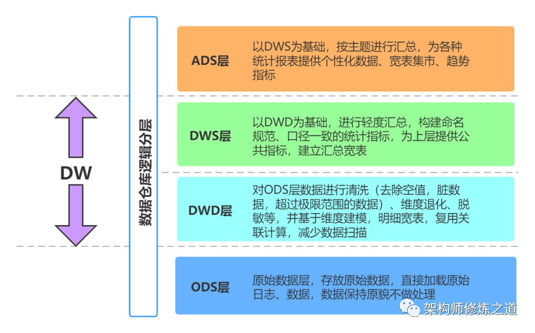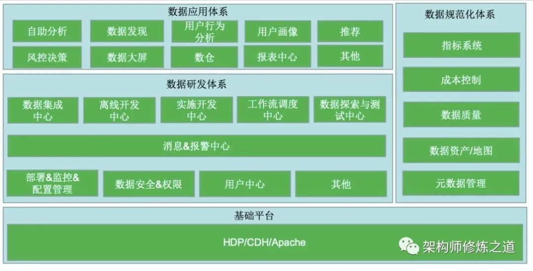 系统与数据调研的目的是厘清企业数据资源的种类、分布、存储及管理现状。系统与数据调研是按业务系统进行盘点的。 业务流程及动作的调研,需要从使用者的角度出发,确认业务系统每个原子操作产生了哪些数据,数据存储在哪些数据表中。数据源盘点需关注数据源种类,如结构化、半结构化和非结构化数据,以及链接地址、账号、密码、可抽取数据的时间段等;数据表级别关注是否为核心表、时间戳字段、数据更新标识、表的总数据量、日增数据量等信息。 系统与数据调研完后,需输出相应的产出物,并与业务系统的相关人员就输出物中的产出项进行沟通和确认。 规划阶段包含业务侧和技术侧的调研,可以并行开展。在业务侧完成调研及需求规划后,技术侧需要结合业务侧的产出进行相关的数据探查事项,主要目的是确认调研产出是否足够支撑业务规划的数据应用建设。总体规划在最终定稿后,业务侧需输出指标、标签清单、数据应用规划文档等,而技术侧需输出技术和系统调研的相关输出物,以及系统调研阶段的总结性报告。第一阶段的规划工作完成后,进入总体的架构设计阶段。由阿里巴巴提出的 OneData 的核心思想是统一数据主体、统一数据建模、统一数据服务以及一系列的数据管理体系。在设计阶段,可以参考这几个方面进行考虑与架构。如下图所示。数据中台的数据架构设计是基于需求调研阶段的业务需求、数据情况,完成数据中台概要设计工作。数据架构设计主要包含 OneModel 、OneID 和 OneService 。数据中台就是要在整个企业中形成一个公共数据层,实现数据的复用,所以强调数据只加工一次,不会因为不同的应用场景造成数据重复加工。数据划分主题进行管理:表的命名,字段的命名等规范统一,做到见名知义数据格式和字段命名和定义规范化:具体参考离线数仓项目讲解的表和字段命名规范:数仓分层-业务主题域-业务过程-基础信息-分区规则数据模型复用:推荐采用分层的设计方式,通常包括:ODS,DWD,DWS,ADS DM,DIM。数据完善:数据中台尽可能的覆盖到所有业务过程,用户和系统的一切行为都被记录下来永久保存OneData 体系的目标是构建统一的数据规范标准,让数据成为一种资产,而不是成本。业务板块:根据业务的特点和需求将相对独立的业务划分成不同的业务板块,不同业务板块之间的指标或业务重叠度较低。数据域是指面向业务分析,将业务过程或者维度进行抽象的集合。数据域划分上,需要从三个方面进行考虑。1)全局性:站在企业高度上,保障良好的扩展性和稳定性。2)数量适中:根据业务情况,划分的粒度要粗细合适,通常在 5~15 个。3)可理解:站在业务的角度上,确保划分便于理解,不产生歧义。在划分数据域时,既要涵盖当前所有业务的需求,也要考虑有新业务的弹性扩展。总线矩阵:在进行了充分的业务调研和需求调研后,就要构建总线矩阵了。总线矩阵由业务处理过程和维度组成一个二维表格。在行为不同的业务处理过程与维度的交叉点上打上标记,表示该业务处理过程与该维度相关。数据分层:数据模型以维度建模理论为基础,建设数据中台的公共数据层。一般将数据模型划分为操作数据层(ODS)、通用数据模型层(CDM)和应用数据层(ADS)。OneID 配置:主要根据具体的业务需求,完成数据源表、ID 映射表、歧义规则表的设置工作。OneID 数据处理:主要通过数据源表和 ID 映射表等配置表单完成原始数据的数据拉取和清洗等操作,生成基础数据。OneID 规则计算:主要利用图计算框架完成关键连接点的搜索和歧义数据的图连通工作,并根据配置的规则对图数据进行切割,从而唯一确定一个实体的身份信息,生成 OneID。OneID 数据存储和展示:主要完成 OneID 图数据存储和展示,以及最后生成的 OneID 清单数据存储等。OneService 包括以下功能模块:服务单元设计、API 设计、API 审核和 API 运营。服务单元设计是指将单个或多个物理表配置成一个视图。基于配置好的服务单元,通过简单可视化界面或 SQL 脚本,设计 API 的请求参数和返回参数。API 设计好后,将其发布至服务市场供使用者调用。API 在被使用前,需要经过申请审批。被使用的 API 需要运维及监控,包括平均响应时长、调用次数、错误率等指标的监控,还可以配置 API 的告警及限流措施等。结合前期调研的业务需求和数据现状,从宏观层面规划出数据中台的各个模块、各个功能部件所用到的技术总体架构图。采集架构:数据采集打通各种数据来源,为数据中台提供待分析和处理的数据,主要分为实时和离线数据采集。存储架构:整个存储架构包含原始数据源存储技术、数据源接入技术、数据中台数据存储与计算技术、数据服务及数据应用技术。数据流:从业务数据进入数据采集通道,到进入数据中台在各个加工任务中流转,再到数据对外服务的这个过程,需要进行哪些存储、哪些技术处理等,这些步骤需要在设计时就以数据流向用流程图的形式画出。网络架构:数据中台涉及与多方的源系统进行数据交互,而网络设计对于后续数据同步、接口调用等有较大影响。部署架构:这部分设计主要涉及数据中台的研发平台与应用软件。需包含整体的部署方案。安全架构:主要包含研发平台的用户角色权限控制方案、开发与生产环境隔离方案、数据安全方案。良好的数据模型可方便、有效地组织数据中台中存