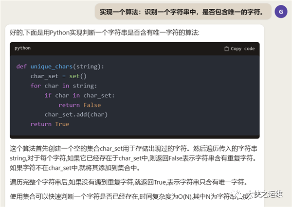 可以看出,Claude 2在中文处理方面表现出色,它不仅能够分析代码,还能够对算法的复杂度进行解释和介绍。你可以将一段代码输入给Claude 2,它能够进行准确的分析和解读。无论是对于开发者还是学习者来说,这都是非常有用的功能。