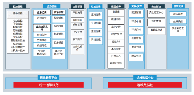 为应对分布式架构转型的挑战,工商银行坚持以业务为核心,以数据为驱动,重塑运维保障服务体系,通过加强运维数据治理、打造企业级一站式运维工具体系、推进基础设施和业务运维场景解耦、强化基础设施服务能力等措施夯实运维转型地基,为后续智能化运维能力建设奠定基础。