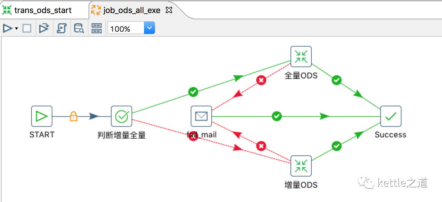 两个步骤的都是通过“表输入”步骤查询数据,全量是直接用“表输出”先把表truncate,然后插入数据;增量ODS是用插入更新的方式。