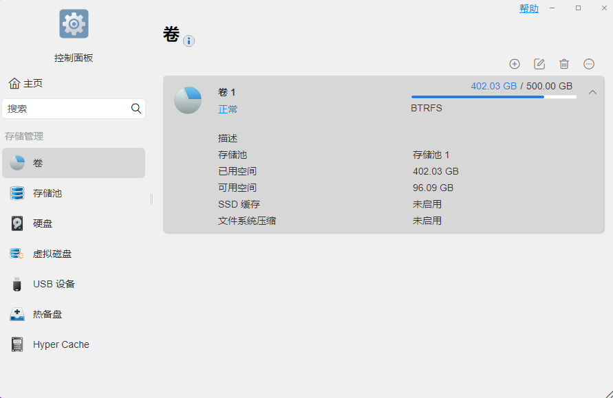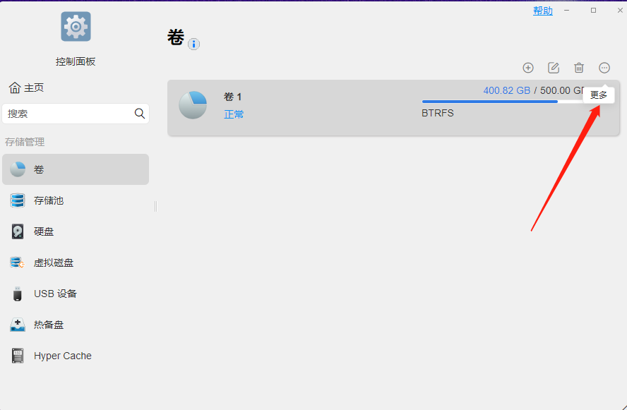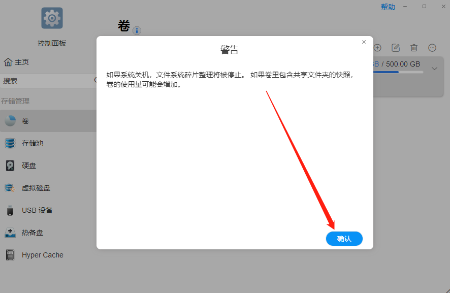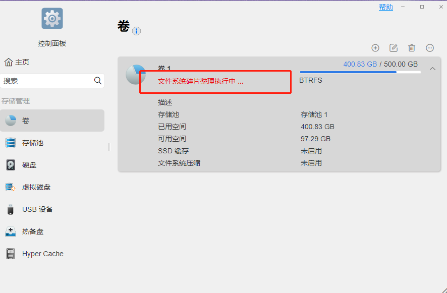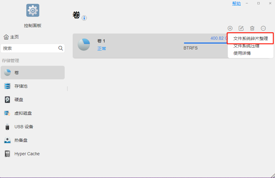 注意:只有在 “文件系统格式”为Btrfs的卷上才能执行文件系统碎片整理;