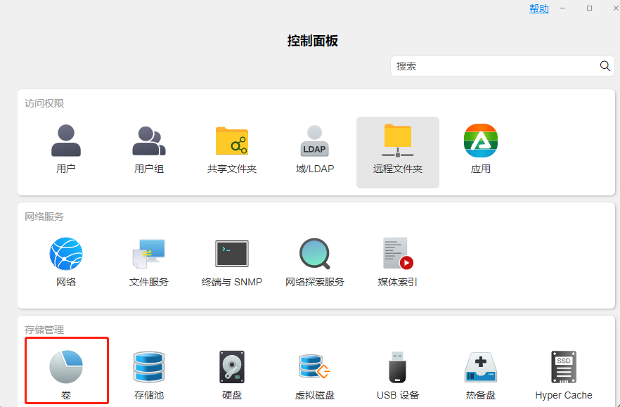 1、登录TOS系统,打开【控制面板】-【卷】;