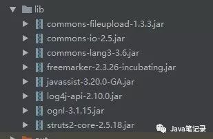 首先使用IDEA新建struts2项目,使用外部的lib(官网下载的),目录如下所示