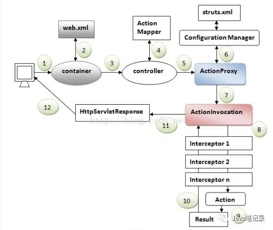 ActionInvocation通过代理模式调用Action,但是在调用之前ActionInvocation会根据配置加载Action相关的所有
