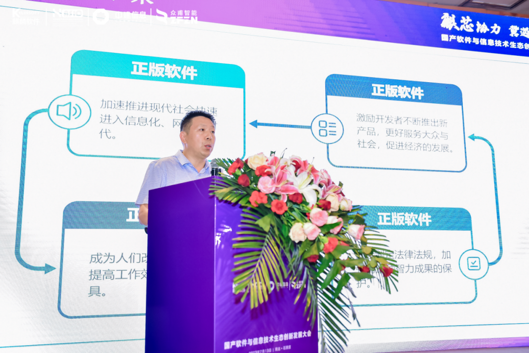 麒麟软件副总裁段启钟以《国产操作系统行业生态创新实践》为主题进行演讲,介绍了国产操作系统的生态创新情况,他指出:国产操作系统的在国产软件生态建设中占据重要位置,麒麟软件坚持提升自主创新能力,加强创新体系建设,为国产软件行业树立了标杆。