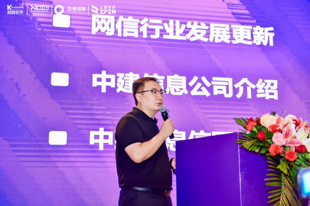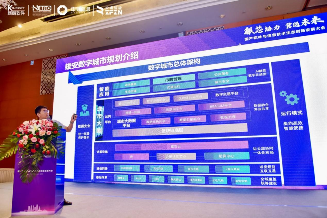 会议同期,中建材信息、中电信数城、飞腾信息、华为、腾讯云、河北咱家软件等公司分别作了主题分享。中电信数字城市科技有限公司解决方案总监边泽宇分享城市数字化建设创新发展的成果,介绍银河麒麟操作系统作为数字底座在雄安数字城市建设中发挥的重要作用。