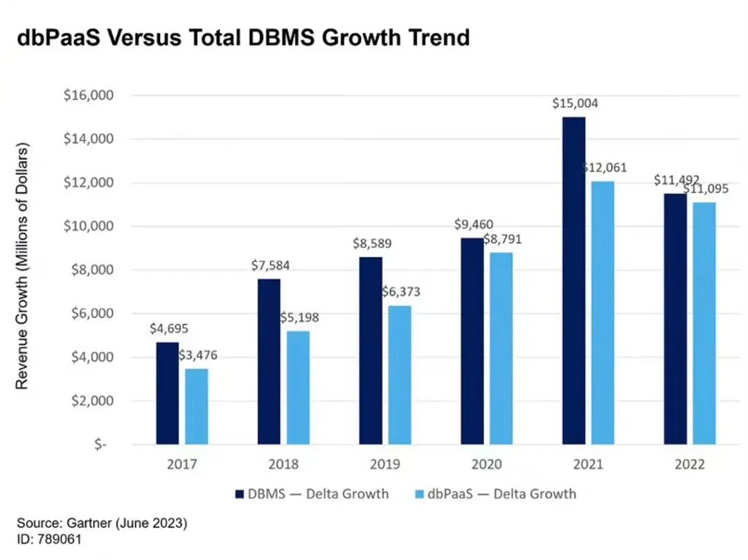 ▲图 | 2022年dbPaaS与DBMS市场增长情况(来源:Gartner)