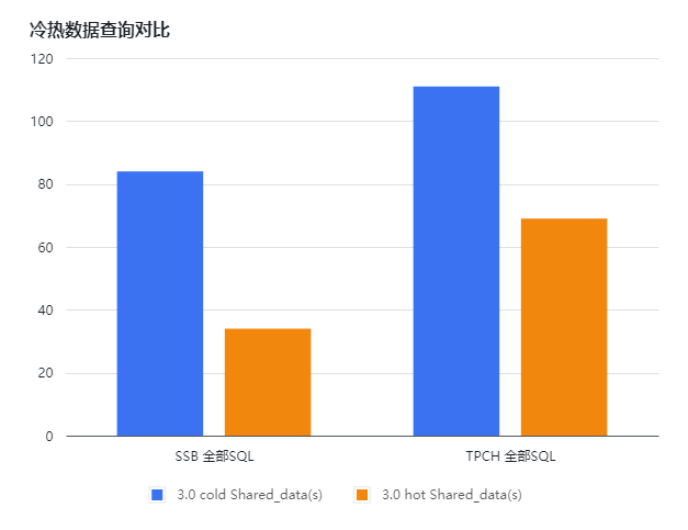 :冷热数据(本地是否有磁盘 cache)SSB 全部 SQL 有2.5倍左右的性能差距,TPC-H 全部 SQL 有1.5倍左右的性能差距。