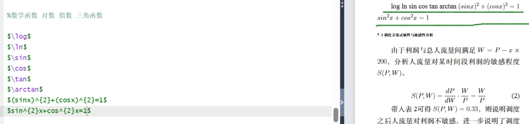 %数学函数 对数 指数 三角函数$\log$$\ln$$\sin$$\cos$$\tan$$\arctan$$(sinx)^{2}+(cosx)^{2}=1$$sin^{2}x+cos^{2}x=1$