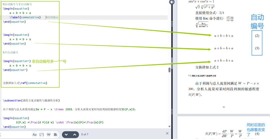 %自动编号与非自动编号\begin{equation}a + b = b + a\label{commutative} %引用展示\end{equation}\begin{equation}a + b = b + a\end{equation}%不自动编号\begin{equation*}a + b = b + a\end{equation*}交换律如上式\ref{commutative}