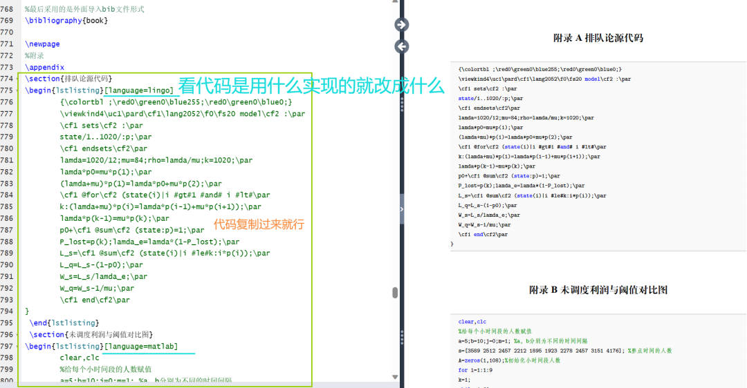 \section{排队论源代码}\begin{lstlisting}[language=lingo]{\colortbl ;\red0\green0\blue255;\red0\green0\blue0;}\viewkind4\uc1\pard\cf1\lang2052\f0\fs20 model\cf2 :\par\cf1 sets\cf2 :\parstate/1..1020/:p;\par\cf1 endsets\cf2\parlamda=1020/12;mu=84;rho=lamda/mu;k=1020;\parlamda*p0=mu*p(1);\par(lamda+mu)*p(1)=lamda*p0+mu*p(2);\par\cf1 @for\cf2 (state(i)|i #gt#1 #and# i #lt#\park:(lamda+mu)*p(i)=lamda*p(i-1)+mu*p(i+1));\parlamda*p(k-1)=mu*p(k);\parp0+\cf1 @sum\cf2 (state:p)=1;\parP_lost=p(k);lamda_e=lamda*(1-P_lost);\parL_s=\cf1 @sum\cf2 (state(i)|i #le#k:i*p(i));\parL_q=L_s-(1-p0);\parW_s=L_s/lamda_e;\parW_q=W_s-1/mu;\par\cf1 end\cf2\par}\end{lstlisting}