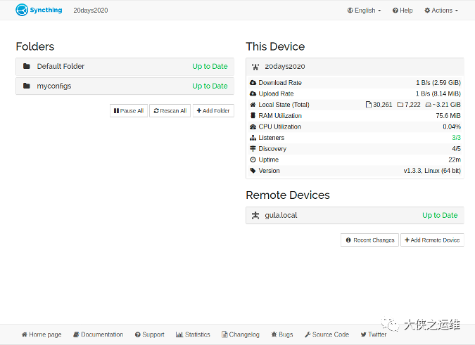 您可以根据需要添加任意数量的目录到共享中,这非常方便。正如您在第一张图片中所看到的,我有一个myconfigs目录,那是我保存配置文件的地方。当我得到一台新机器时,我只需安装Syncthing,如果我在一个机器上调整了配置,我不需要更新所有机器上的配置文件 — 它会自动发生。