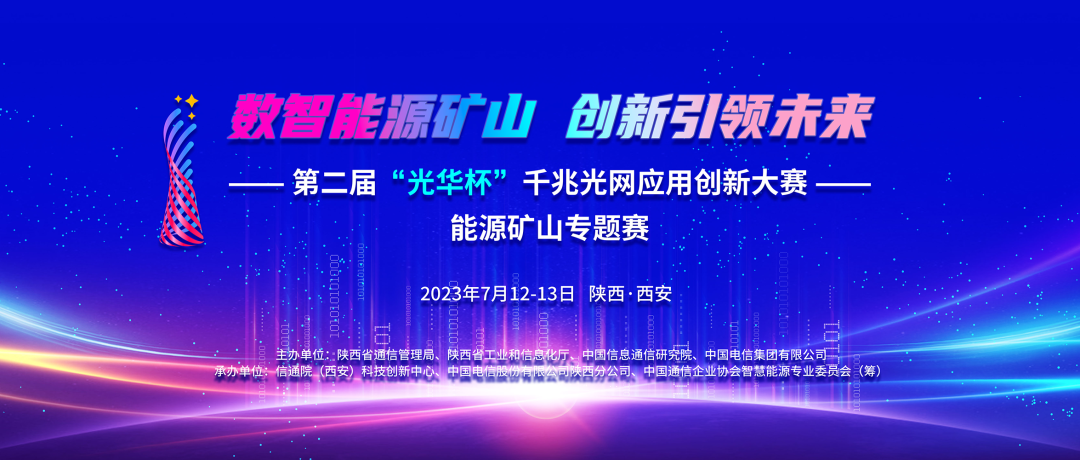 2023年7月13日,第二届“光华杯”千兆光网应用创新大赛能源矿山专题赛决赛及颁奖仪式在西安市举办。本次能源矿山专题赛以“数智能源矿山 创新引领未来”为主题,由陕西省通信管理局、陕西省工业和信息化厅、中国信息通信研究院(以下简称“中国信通院”)、中国电信集团有限公司共同主办。专题赛旨在持续推进千兆光网应用创新及规模化落地、构建我国良好千兆光网应用生态。同时,推动能源矿山行业创新发展,利用数字新基建促进解决能源、矿山领域的难点问题,助力能源矿山行业数字化、智能化转型升级。