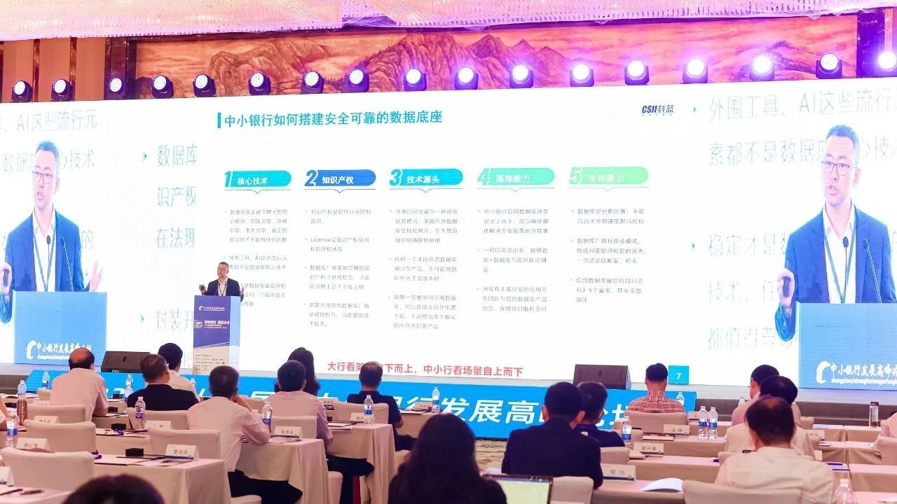 人民银行、银保监等主管部门近期密集出台文件,指导银行一般及关键业务系统要实现安全自主可控,信创势在必行。数据库是银行信息化系统里最重要的基础软件,承载着银行各类关键数据,作为银行的数字底座其国产化替代尤为重要。中小银行面对市场上几百个自称国产的数据库产品,如何寻找适合自己的真正国产自研信创数据库,张俊喜提出中小银行信创数据库选型的五维模型: