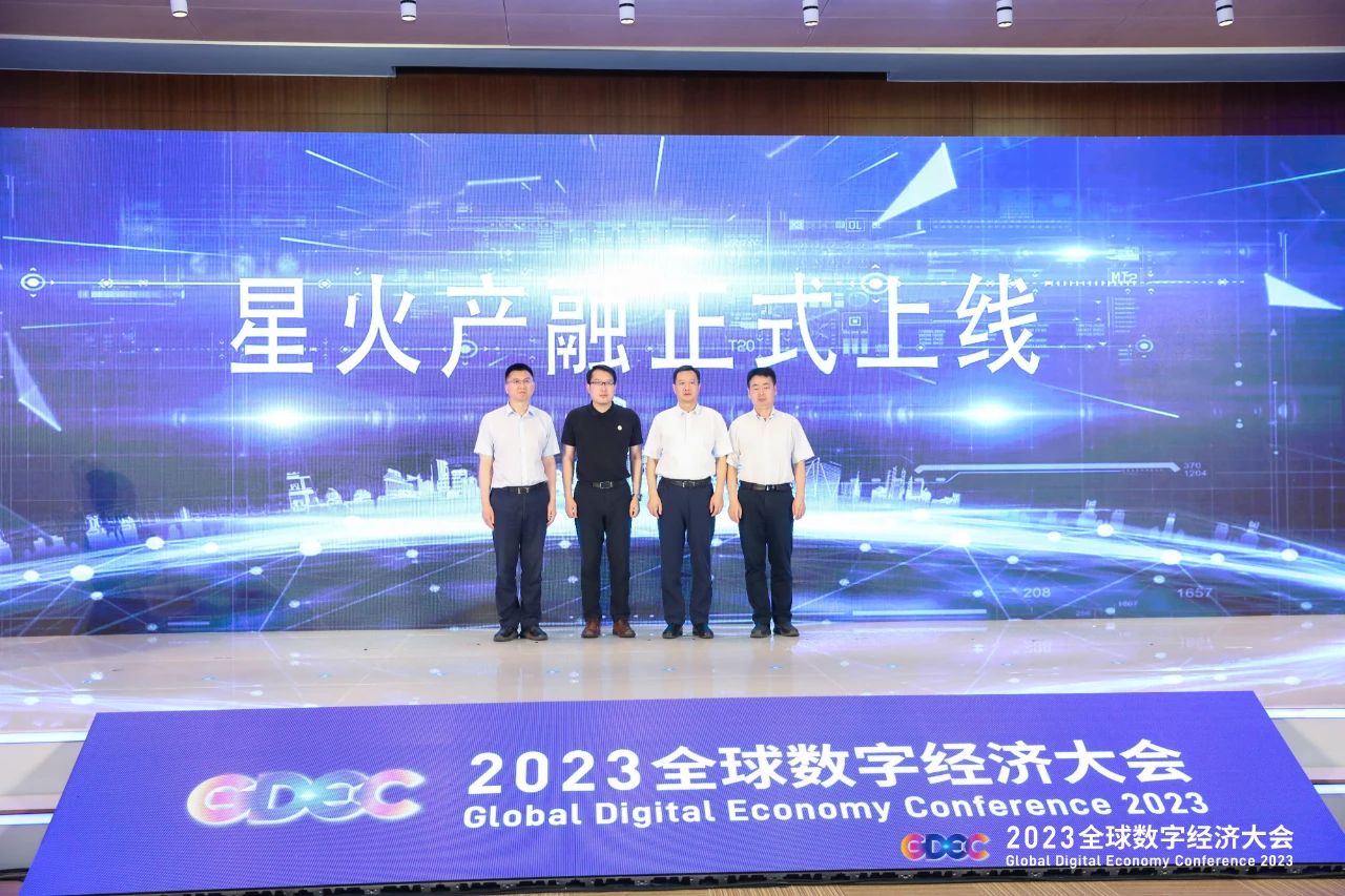 2023年7月5日,由北京市人民政府、国家发展和改革委员会、工业和信息化部、商务部等共同主办,以“数聚工业,融通发展”为主题的2023全球数字经济大会——工业互联网创新发展论坛在京隆重举办。北京市经济和信息化局领导,北京市通信管理局党组成员、副局长王晖,北京市顺义区委常委、副区长徐晓俊,中国信息通信研究院纪委书记李德文共同启动了星火产融的上线仪式。