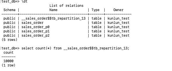 test_db=> select count(*) from sales_order;count-------10297(1 row)