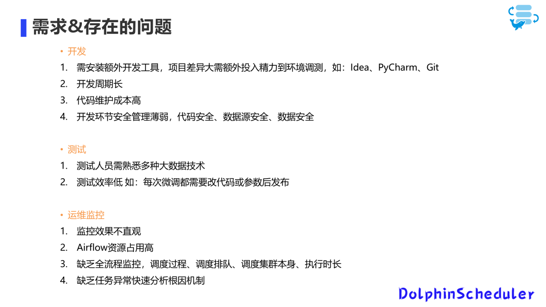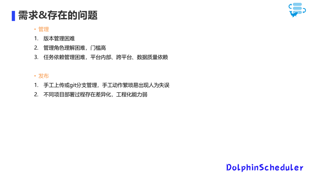 大家下午好,我是来自腾讯音乐的杜延龙,在公司中,主要负责数据中台产品的研发工作。这篇文章主要是基于Apache DolphinScheduler架构,面向TME企业管理域数据的开发、测试、项目管理发布、运维流程一体化实践,希望对你有帮助!