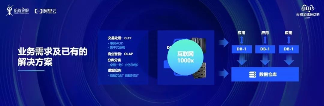 首先介绍下数据库和业务应用的背景。可以看到当前的集中式数据库所面临的挑战,要做数据库产品的研发首先要有业务需求,数据库经过一些年的发展,到了80年代中期自动提款机出现之后,数据库非常重要的特性开始得到普遍的应用,就是在线的交易处理。