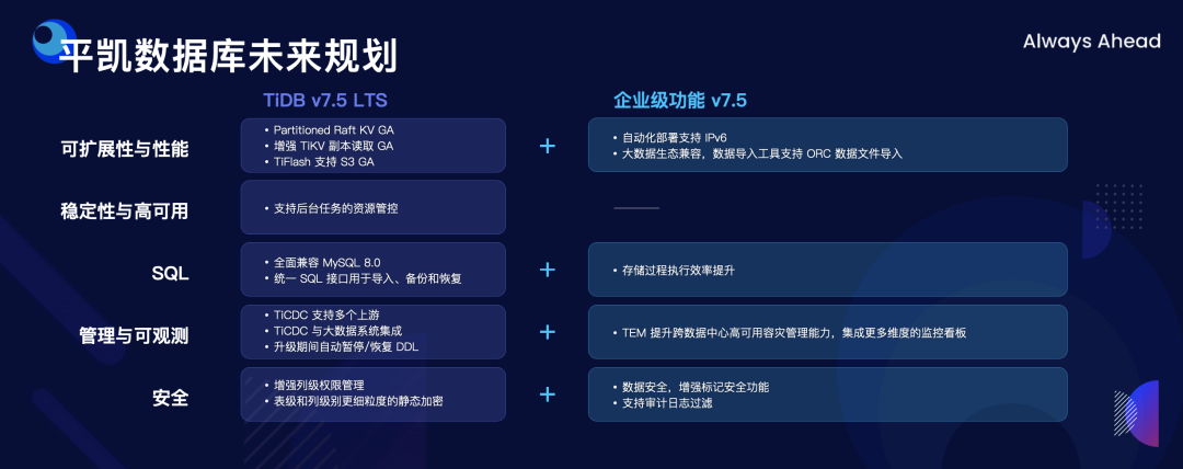 在 PingCAP 用户峰会 2023 上,PingCAP 研发副总裁唐刘、PingCAP 首席科学家丁岩,共同带来了“携手中国用户,打造世界级产品”主题分享。分别从 TiDB 7.x 版本内核的演进方向、面向中国企业级用户的新品平凯数据库的发版策略和产品路线图两个角度,解析 TiDB 产品家族协同演进路径。以下为分享实录。