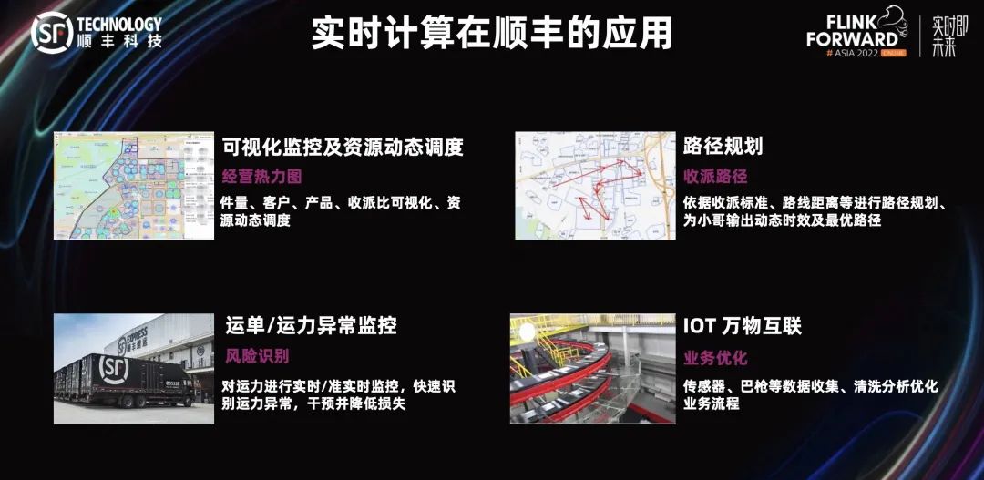 在顺丰的业务场景中,哪些场景使用到实时计算的能力了呢?简单列举了如下四个场景: