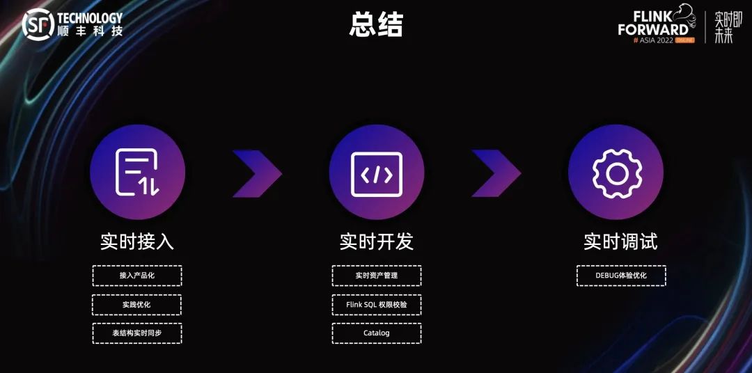 以前,如果要接入数据和数据开发。首先要知道数据库的地址和 Kafka 的地址,同时申请权限和了解字段的相关信息。之后还要需要了解 Flink CDC 和 Flink SQL 接入等相关知识、配置参数使用,测试环境调试。之后在生产环境发布,验证数据。最后对资产在地图上的维护,同时在生产环境供其他人使用。优化后,我们只需在直通车上申请权限,然后就可以直接在直通车上进行发布,同时验证数据。之后就可以开放给所有人使用了。发布时间从原来的五天到现在不到一天就能够完成实时数据的接入。2.3 总结