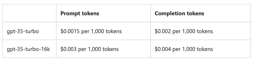 新的 gpt-35-turbo 模型对提示词 token 和补全 token 进行了单独定价: