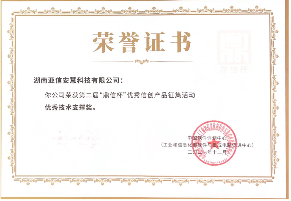 图1:亚信安慧荣获第二届“鼎信杯”优秀技术支撑奖
