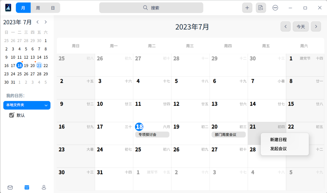 统信自研邮箱新增支持Exchange Web Services(EWS)协议收发邮件,支持日历视图、会议日程。