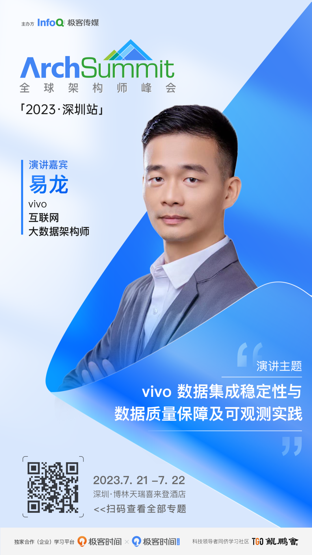7 月 21 日 - 22 日, 在 ArchSummit 全球架构师峰会(深圳站),vivo 互联网大数据架构师易龙,将于会上发表题为《vivo 数据集成稳定性与数据质量保障及可观测实践》的演讲,介绍vivo 数据集成平台架构及功能、vivo 数据集成稳定性保障实践,vivo 数据集成链路数据质量保障实践,以及 vivo 数据集成可观测实践。