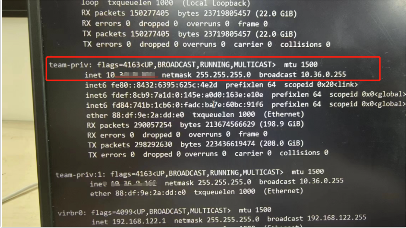 1、因为oracle节点1 team_priv 网卡丢失的问题,导致节点1操作系统连接不上