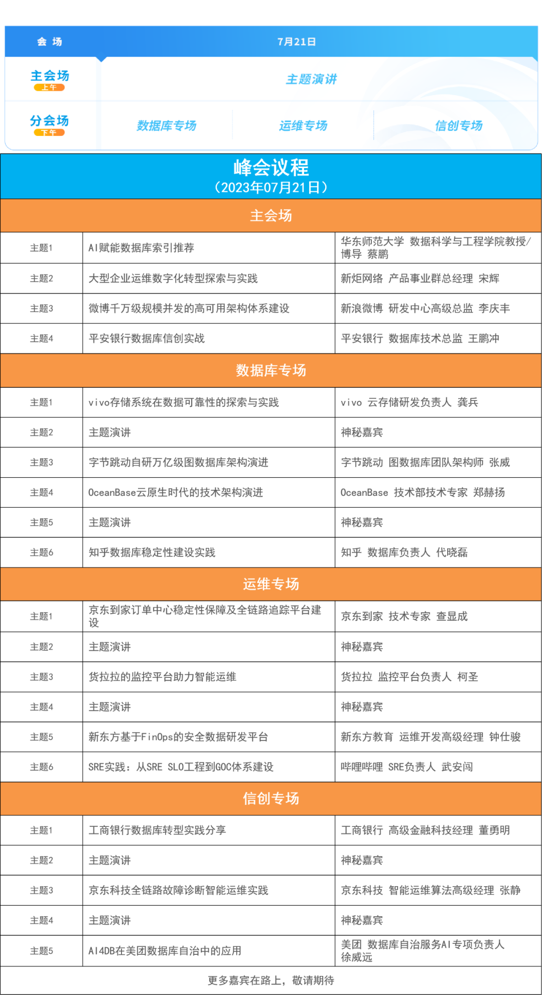 *更多数据库主题演讲嘉宾及干货议题在路上,持续更新……