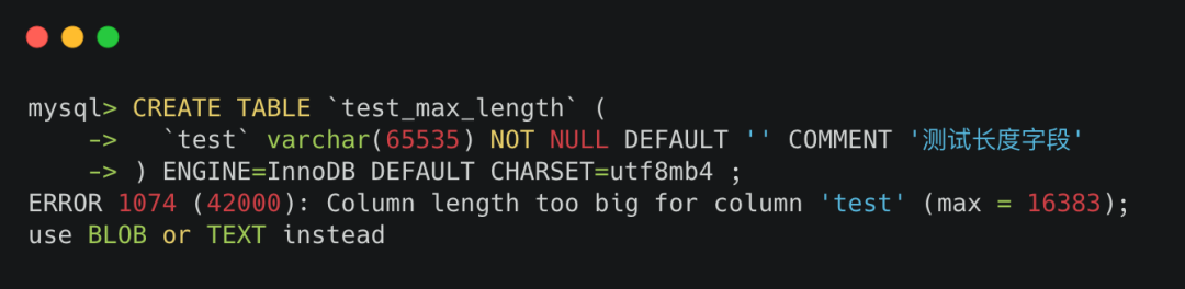 如果离谱点,数据量更大,比64k还大,这时候就不能继续用varchar了,需要改用text和blob类型字段。