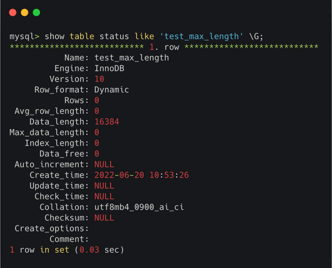 所以我们回过头来看我们建的表,当只有一列not null的 varchar字段时,行记录长下面这样。