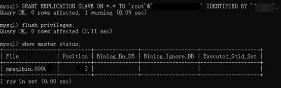 | 查询master状态 | mysql> show master status; 记录下File和Position的值 |