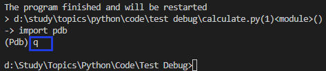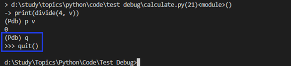 分析结束后使用使用q命令退出debug模式,再使用 quit()