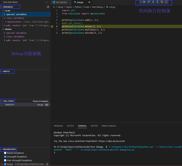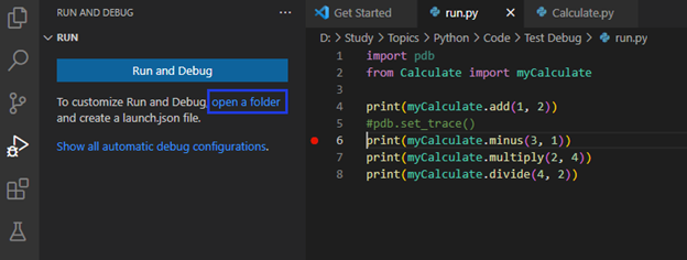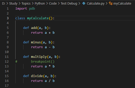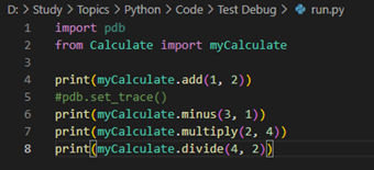 执行run.py进入debug模式后,如果想要在Calculate.py里面设置断点