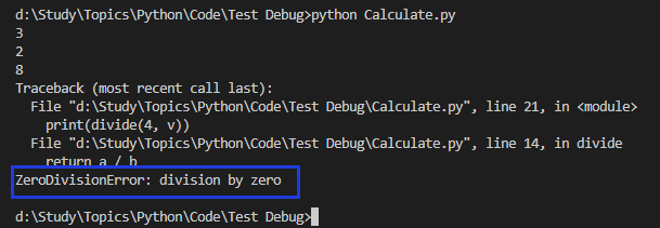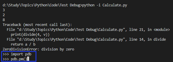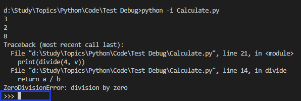 python -i Calculate.py执行程序到报错退出后,会进入交互式命令行