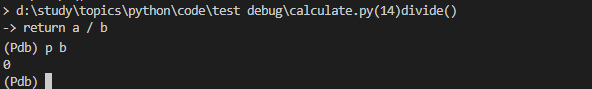 使用pdb打印命令p可以查看变量的值,也可以用其它命令继续进行分析。